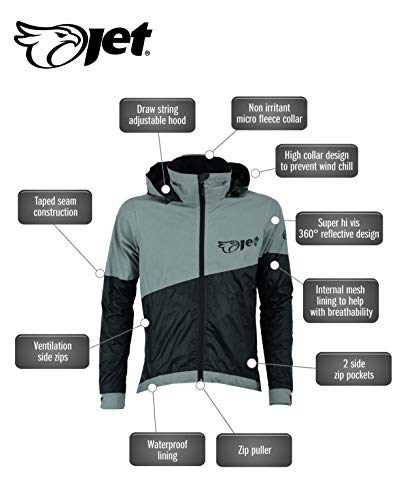 Specification: Jet Ultra Hi Vis 360 Reflektierende Outdoor Radsportjacke Wasserdicht Atmungsaktiv Winddicht (Schwarz, XL)