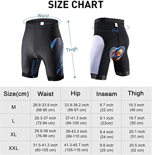 Specification: KUYOU Radlerhose Herren mit Sitzpolster 5D Gepolsterte Fahrradhose kurz Atmungsaktive Elastizität Schnelltrocknende Stoßfeste Herren Fahrrad Hosen Radhose