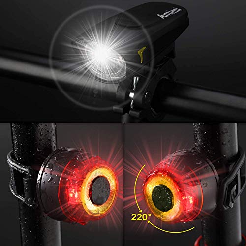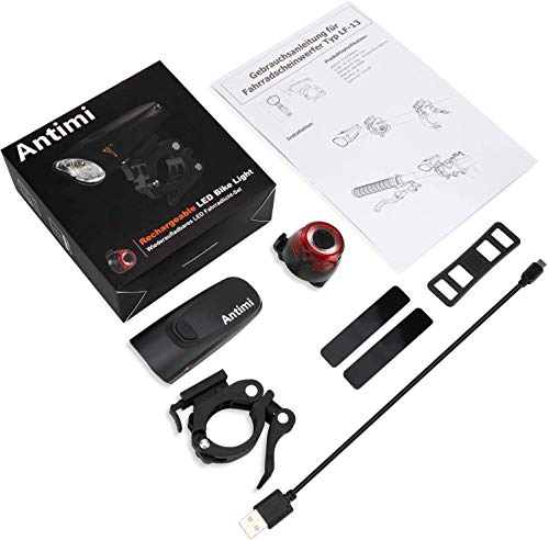 Specification: Antimi Fahrradlicht Set, Led USB Wiederaufladbar Fahrradbeleuchtung Set mit IPX5 Wasserdicht Frontlicht & Rücklichter,Fahrradlampe mit Samsung 2600mAh Li-ion Akku (Gray)