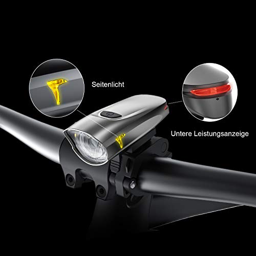 【Seitenfenster &Batteriestandanzeige】Die Seitenfenster mit gelbem Licht machen Sie leicht zu sehen, um Ihre Sicherheit zu verbessern. Low-Power-Anzeigefunktion, Sobald der Akkustand unter 20% sinkt, leuchtet der “An/Aus”-Knopf rot. Erinnern Sie sich bitte an Aufladen für die LED Frontlichter
