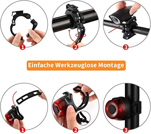 【IPX5 Wasserdicht & Einfach zu Installieren】 IPX5 Wasserdicht und staubdicht Fahrradlichter widerstehen allen nachteiligen Wetterbedingungen. Es ist einfach und sicher mit einer neuen stabilen, werkzeuglosen und schnell zu lösenden Stangenhalterung zu installieren.
