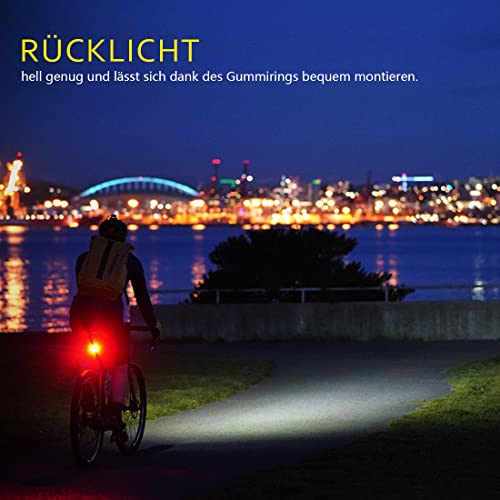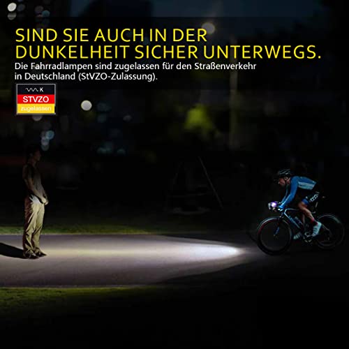【Blendfreies Design & 360°Fahrsicherheit】 Das blendfreie Design des Fahradbeleuchtungsset erhöht die Sichtbarkeit und Sicherheit auf die Fahrzeuge. Bei Fahrten in der Dunkelheit entsteht unsere Fahrrad Lichter eine große Lichtfläche auf sowohl Fern- als auch Nahbereiche, die gleichmäßig hell ist. Die Seitenfenster mit gelbem Licht machen Sie leicht zu sehen und strahlt das Rücklicht mit 220°Weitwinkelbeleuchtung auch zur Seite, was für zusätzliche Fahrsicherheit aus 360° Blickwinkeln sorgt.