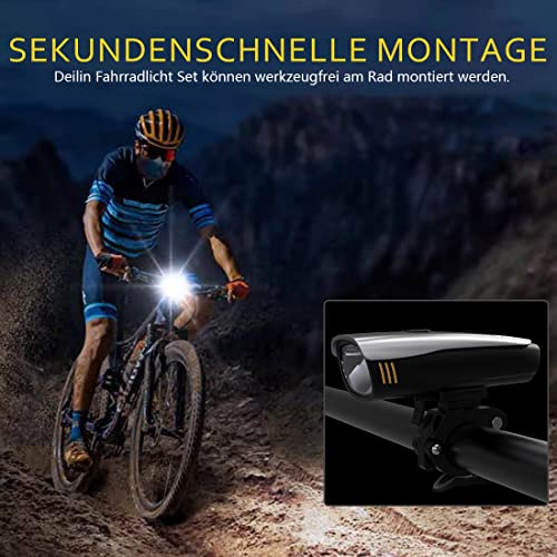 Deilin Fahrradlicht Set LED Fahrradbeleuchtung USB Aufladbar Fahrradlampe, IPX5 Wasserdicht Fahrradlichter Vorne Rücklicht Fahrrad Licht Fahrradleuchtenset Fahrradlampe