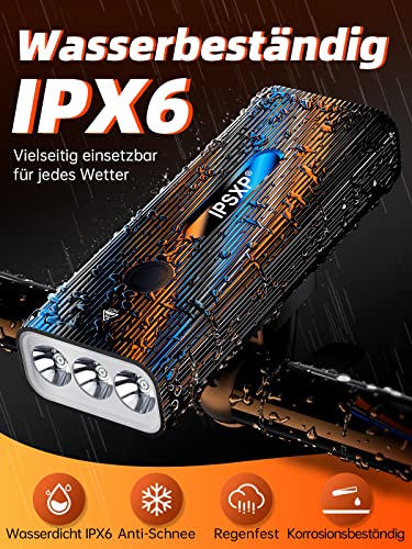 IPSXP Fahrradlicht,14+ Stunden Akkulaufzeit, (IPX6) Hohe Wasserdichtigkeit,Hohe Helligkeit & Powerbank-Funktion,USB Aufladbar Fahrradbeleuchtung,Mehrere Modi,Geeignet für alle Arten von Fahrrädern