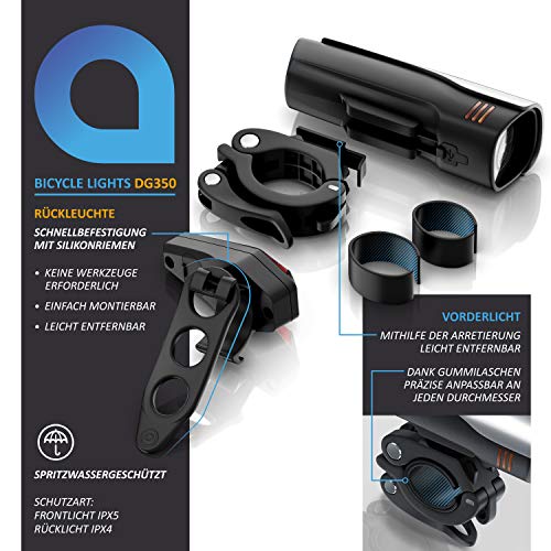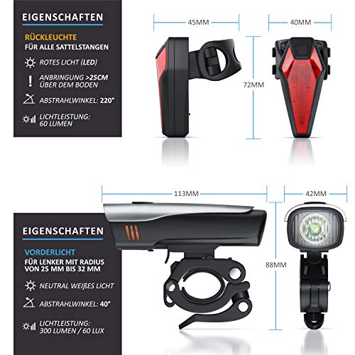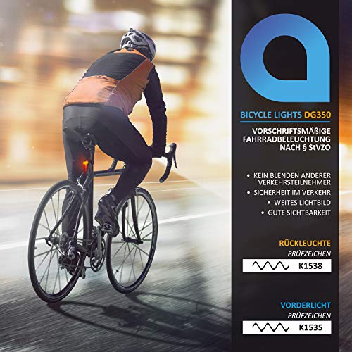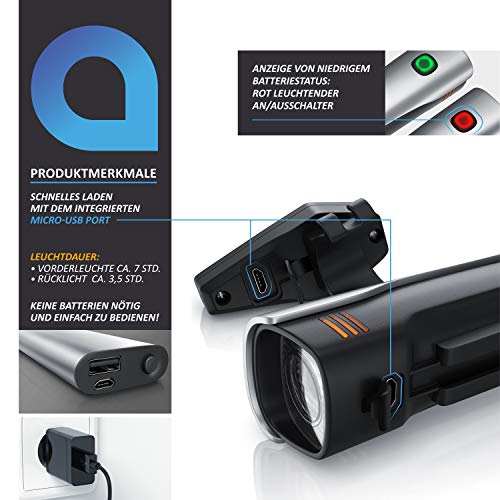 Specification: LED Akku Fahrradbeleuchtung Set StVZO – Fahrradlampen-Set – Vorderlicht und Rücklicht – zugelassen nach StVZO – Schnellbefestigung – Befestigungs-Clip – Fahrradlicht Fahrradlampe Fahrradleuchte