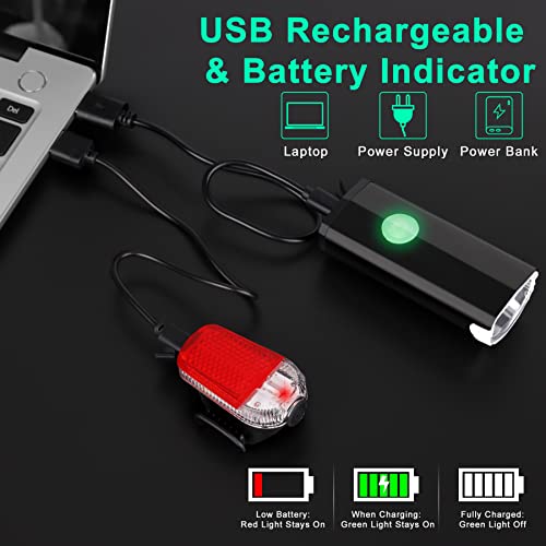 Toocking Fahrradlicht Set, LED Fahrradlampe Aus Aluminium STVZO Zugelassen, USB Aufladbar, IPX4 Wasserdicht, 2 Licht Modi Fahrrad Licht Bike Light mit Frontlichter und Rücklicht für Mountainbike