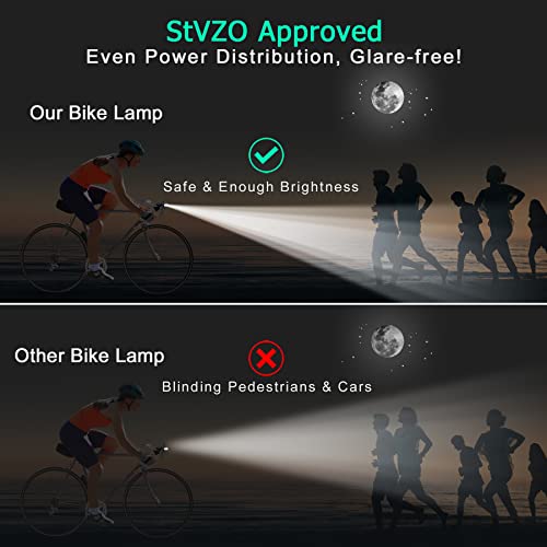 【StVZO & Anti-Glare】LED Fahrradlicht Set ist von StVZO,CE und ROHS zertifiziert. Mit dem blendfreien Design verhindert, Fahrradbeleuchtung dass entgegenkommende Fußgänger oder Autos geblendet werden und gibt Ihnen genügend Sicherheit und für entgegenkommende Leute zu vermeiden.