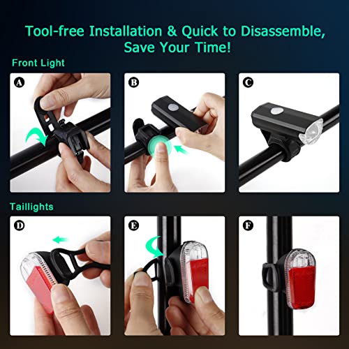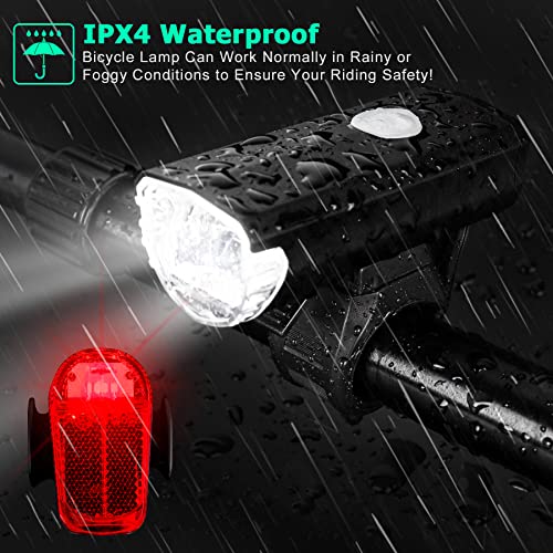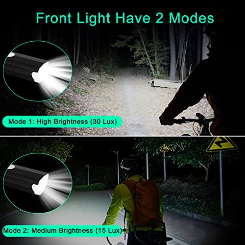 【2 Licht Modus Optionen】Das fahrrad licht verfügen über zwei Modi: hohe Helligkeit (30 Lux) & mittlere Helligkeit (15 Lux).Das Frontlicht halten bis zu 5 Stunden (Helligkeit) / 10 Stunden(mittlere Helligkeit), und 3-4 Stunden für Rücklicht.One-Touch-Schalter um ihn an verschiedenen Lichtverhältnissen anzupassen!