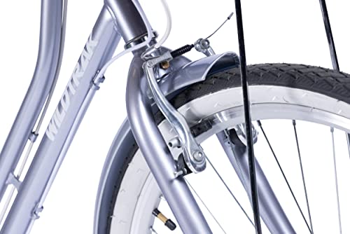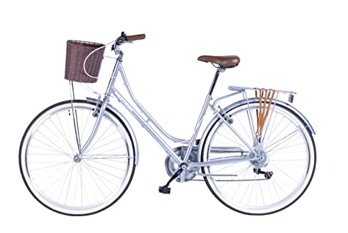 Das Design des Wildtrak WT041-Fahrrads orientiert sich an den klassischen „Oma -Hollandrädern, um eine britische Interpretation des alltäglichen Stadtrads zu bieten. Mit einer bequemen aufrechten Sitzposition und einem niedrigen Einstiegsrahmen ist das stylische Wildtrak mit allem ausgestattet, was Sie für das Leben in der Stadt und darüber hinaus brauchen. Ein vollständiger Kettenschutz, um die Kleidung frei von Öl und Schmutz zu halten, vordere und hintere Schutzbleche für die Tage, an denen es regnet. Ein hinterer Gepäckträger bedeutet, dass Sie Taschen für Ihre Fahrt, Ihr Picknick oder Ihren Einkauf hinzufügen können. Es gibt sogar einen Korb vorne, um den Vintage-Look zu vervollständigen. Das Herzstück des Wildtrak ist ein hochfester Stahlrahmen, der mit einem Shimano-Sechsgang-Antrieb, Alu-V-Bremsen zum Verlangsamen und natürlich vor allem einem bequemen Sattel ausgestattet ist.