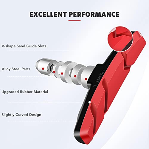【Verbesserte Version: V-Sandführungsschlitze】 Einzigartige V-förmige Sandführungsschlitze können Schäden durch Sand, Schlamm und Stein an den Felgen beim Bremsen verhindern. Leicht gebogenes Design schadet dem Rad nicht und bietet eine bessere Bremskraft. Ideale Bremsleistung für Ihr tägliches Fahrradleben und verschiedene Straßenverhältnisse.