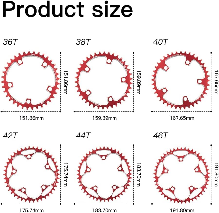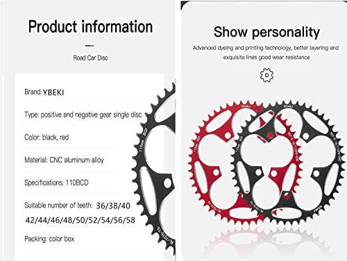 Specification: YBEKI 110 BCD Fahrrad Kettenblatt 36T 38T 40T 42T 44T 46T 48T 50T 52T 54T 56T 58T Schmale Breite Kettenblätter für 8 9 10 11 12-Fach Rennrad