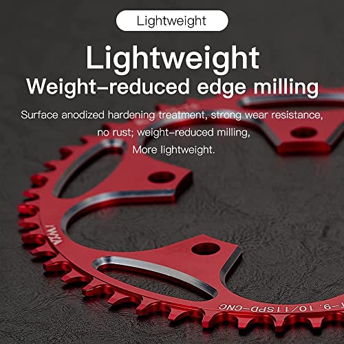 ☆ LIGHTWEIGHT DESIGN – Kettenblatt ist aus Legierung Struktur, leicht, aber robust. mit positiven und negativen (Der positive Zahn entsprechenden chian Zahnbreite; Zahn entsprechenden negativen Kette ist schmal ), Zähne entwickelt, um die Kette von fallen zu verhindern