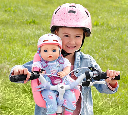 ✔ PERFEKT AUSGESTATTET: Natürlich steht bei der Fahrradtour mit Baby Annabell Sicherheit an erster Stelle. Im Fahrradsitz (separat erhältich) wird sie gut angeschnallt und bekommt ihren Fahrradhelm auf.