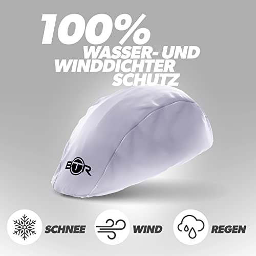Der regenschutz für fahrradhelm mit einfacher Passform von BTR hält Ihren Kopf trocken und verwandelt Ihren Lieblingshelm im Handumdrehen in einen wasserdichten Helm