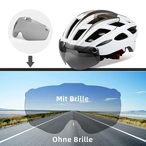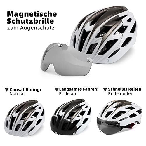 Specification: Shinmax Fahrradhelm,CE-Zertifikat,Fahrradhelm mit Abnehmbarer Schutzbrille Visier für Herren Damen Erwachsene Radhelm Einstellbarer Sicherheitsschutz LED Rücklicht Skateboarding Ski Snowboard NR-096
