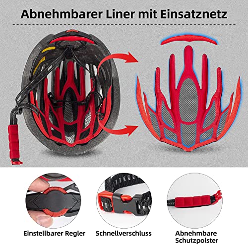 【Einstellbare Größen】: Der Rennrad Helm geht mit einer Standardgröße. Der Einstellgürtel funktioniert perfekt und ist gut gemacht.Mit Kinnpolster, One-Touch-Schnallenverstellung System, Side Straps wird die Größe zu Ihrem Mögen erhöhen / verringern 57-62 cm (22.44 “-24.41”). Dieser Fahrradhelm ist für herren und damen geeignet