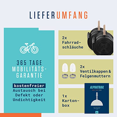 Alphatrail MTB Fahrradschlauch Rick 29 Zoll AV Autoventil 2X Set mit Mobilitätsgarantie I Kompatible Fahrradreifen Schwalbe, Continental, Conti, Maxxis, Onza, WTB, Michelin & Kenda Fahrrad Schlauch