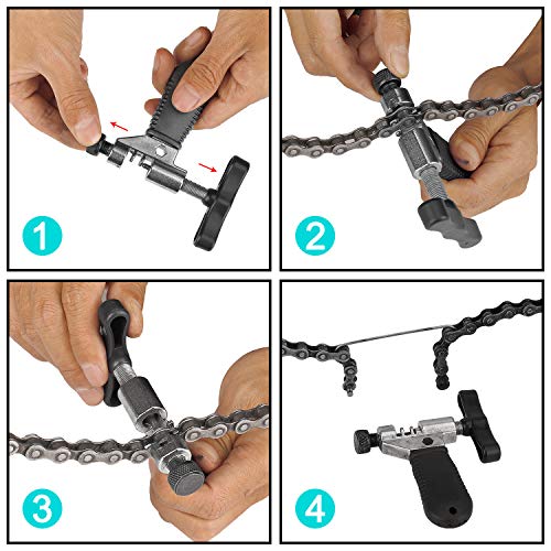 Universelles Kettenbrecher-Splitter-Werkzeug: Das Entfernen des Fahrradketten-Splitters ist ein unverzichtbares Multitool für die Durchführung grundlegender Fahrradwartungen. Dieses Werkzeugset wurde speziell zum Entfernen und Installieren von Kettenstiften in Ketten mit 7, 8, 9, 10 11 12und einfacher Geschwindigkeit entwickelt.