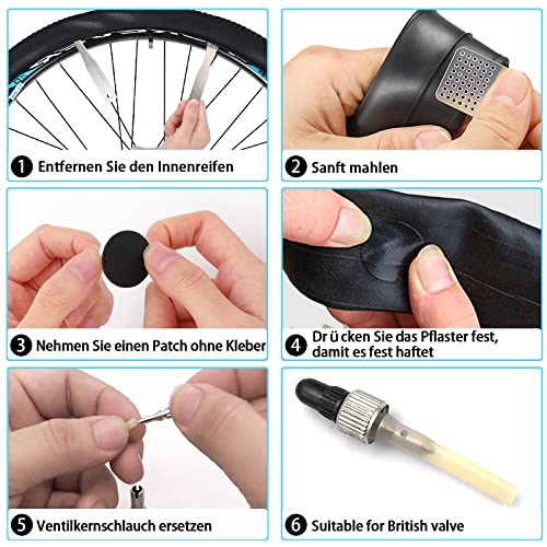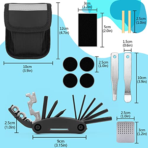Bestens Ausgerüstet: 16-in-1 Fahrrad Werkzeug mit Satteltasche , 2* Reifenheber, 5* Selbstklebende Flicken, 1* Metallraspel, 2* Ventilkernschlauch. Dieses Fahrradzubehör ist mehr als genug, um Ihr Fahrrad während einer Fahrradtour zu reparieren. Aus hochwertigem Stahl, Robust und langlebig, ist Bestens Ausgerüstet, Super für unterwegs und vielseitig einsetzbar.